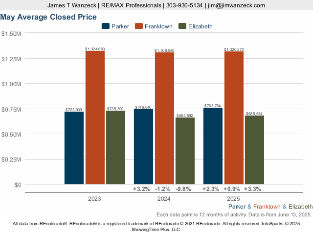 Parker vs Franktown vs Elizabeth Average Sold Price